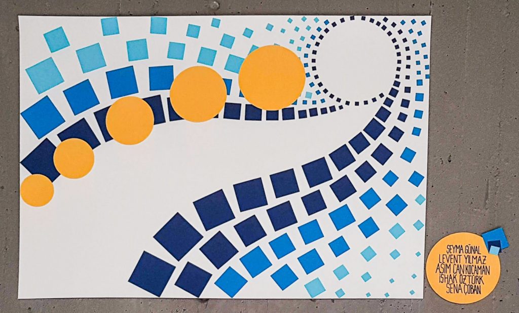 We put our assignment on the wall. Sena Çoban had the idea of using the biggest circle to write our names, and to decorate it with squares. It was a really cute idea. We were satisfied with our assignment at the end of the day. I am thankful to all my teammates.…