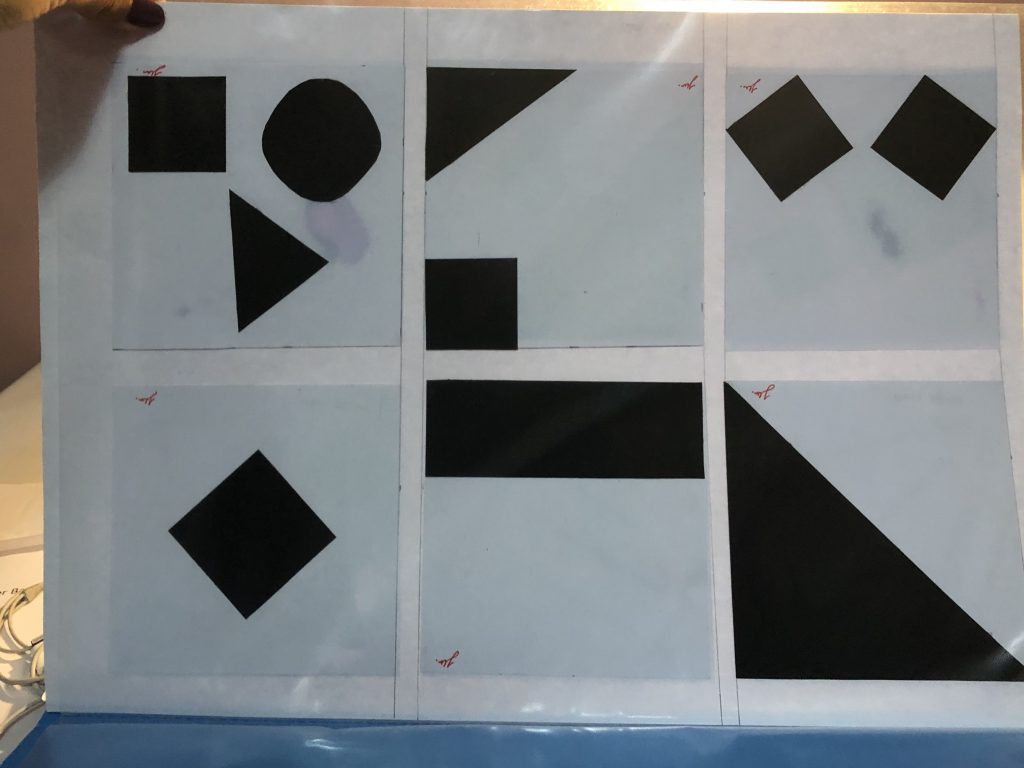 12. 3 stripes + 1 sq. + 1 tri. + 1 cir.