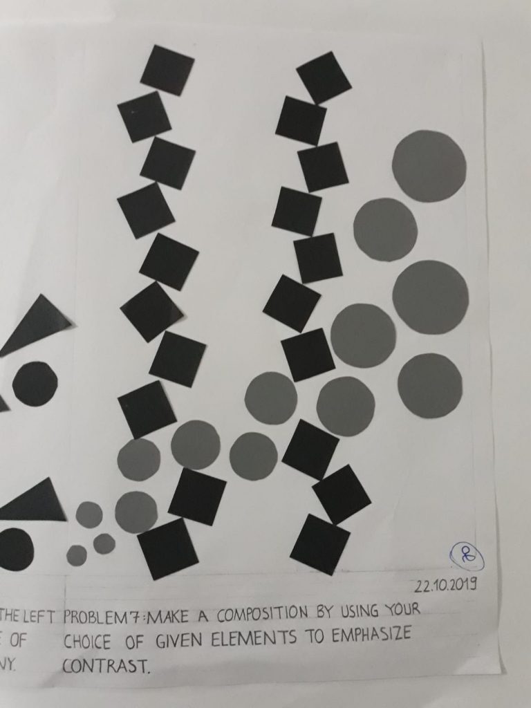 “Make a composition by using your choice of given elements to emphasize contrast.”