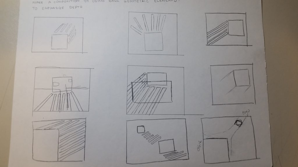 I tried to create depth effect with the size of the squares.Also, I wanted to add auxiliary lines to support the effect of depth and to help the eye of the person looking at my composition.